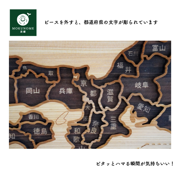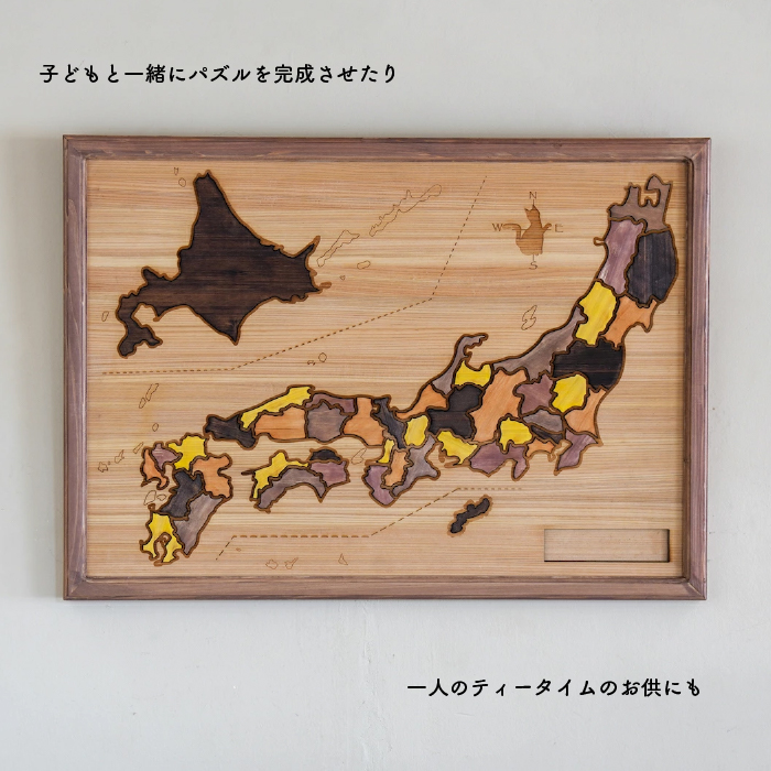都道府県ごとに輪郭を削りだした緻密で繊細な 色彩と質感。指をなぞれば、木のぬくもり、やさしさで 日本を再認識できるはずです。あなたと愛する家族の思い出はどのピースで語りますか。